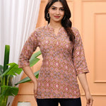 Printed Cotton Straight Kurti With 3/4Th Sleeves