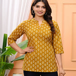 Mustard Yellow Printed Short Kurti With 3/4 Sleeves