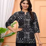 Black & White Patch Print Short Kurti With Mandarin Collar