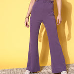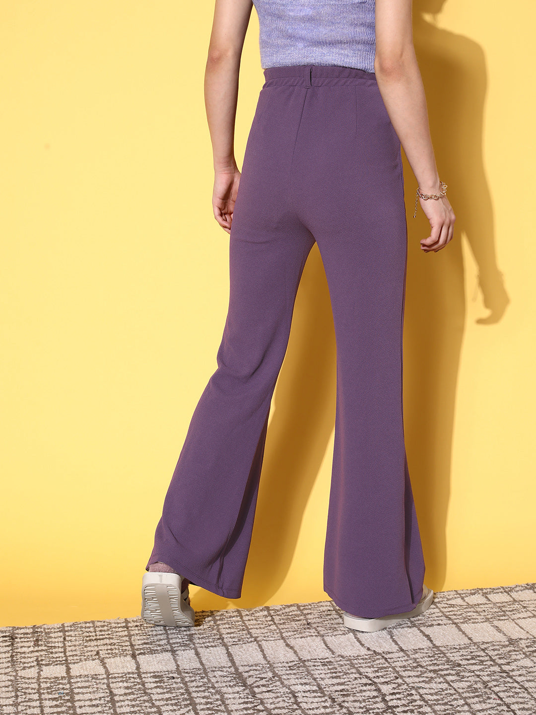 Lavender Bell Bottom Knitted Pants, in Karera Crepe fabric, Unlined, Full Length, Regular Fit, Button Closure, Straight Hemline and features Flared Leg Pants