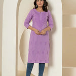 Women Lavender Chikankari Straight Kurta