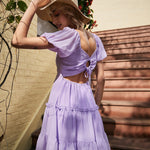 Lavender Sweetheart Neck Short Skater Dress, in Georgette fabric, Polyester lining, Above Knee, Fit & Flare Dress, No Closure, Flared Hemline and features Ring Detail At Back
