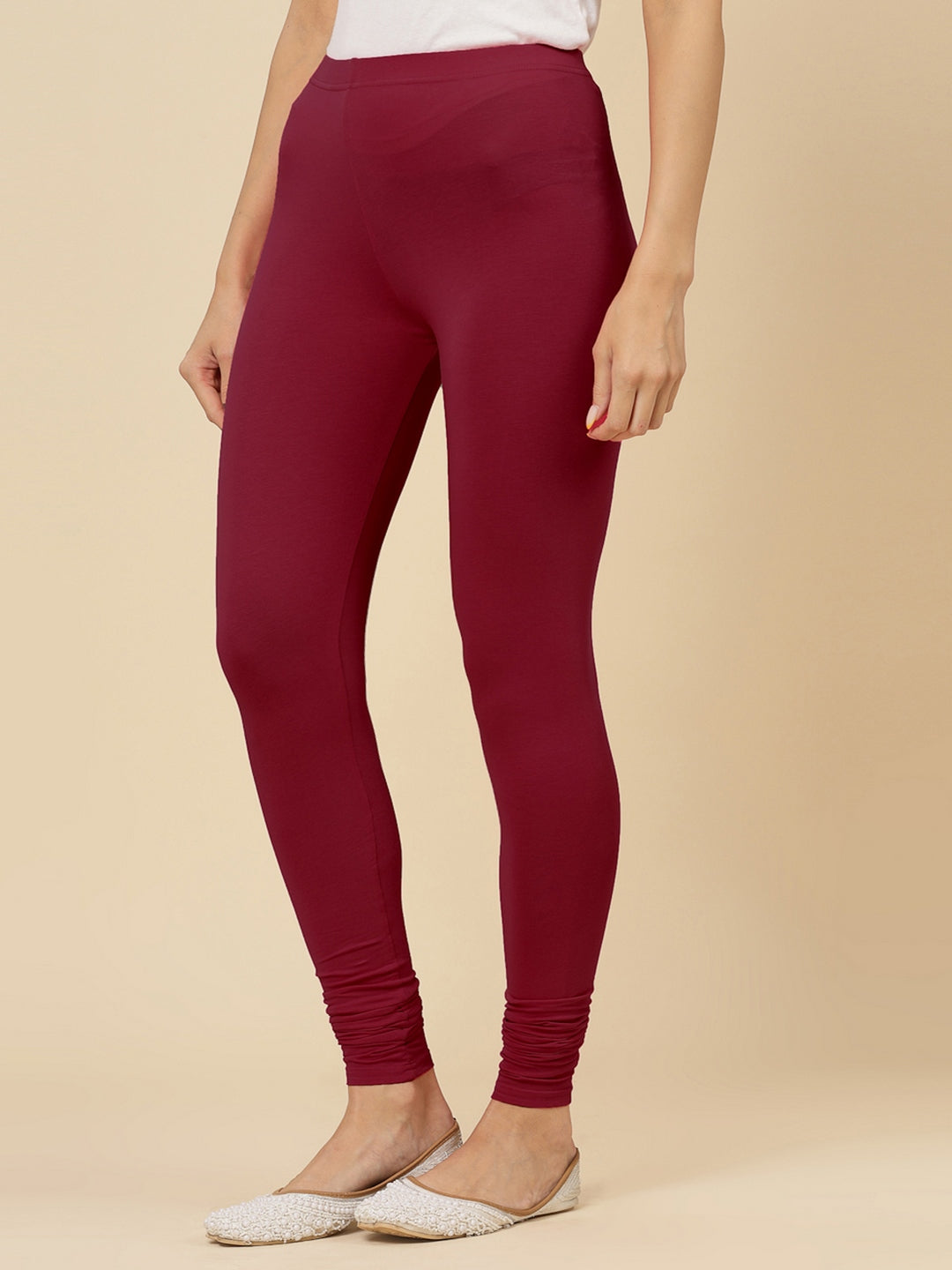 Solid Mid Rise Cotton Lycra Churidar Leggings (Pre-Order)