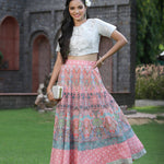 Pink Poly Muslin Embroidered Flared Lehenga Choli