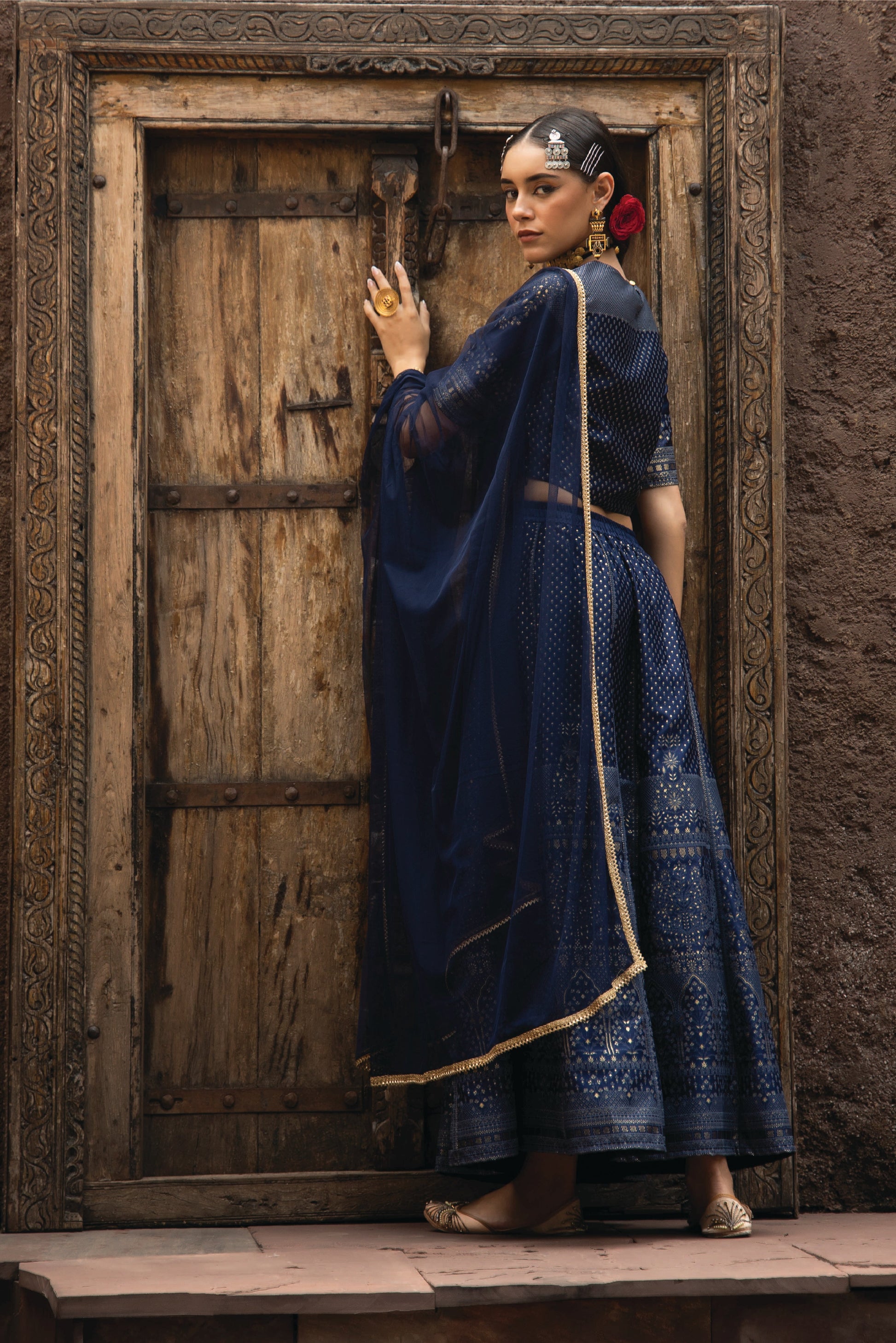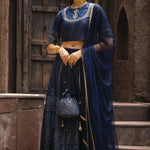 NAVY DULL SATI POLYSTER NET FESTIVE EMBROIDERED CROP LEHENGA CHOLI DUPATTA FOR WOMEN
