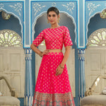 Fuschia Printed Brocade Festive Wear Lehenga Choli Sets