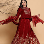 Maroon Velvet Ethnic Motif Printed Lehenga Choli & Dupatta Set