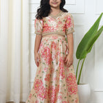 Description - Straight Style Art Silk Fabric Beige Color Floral Printed Lehenga Choli With Gotta Lace Work