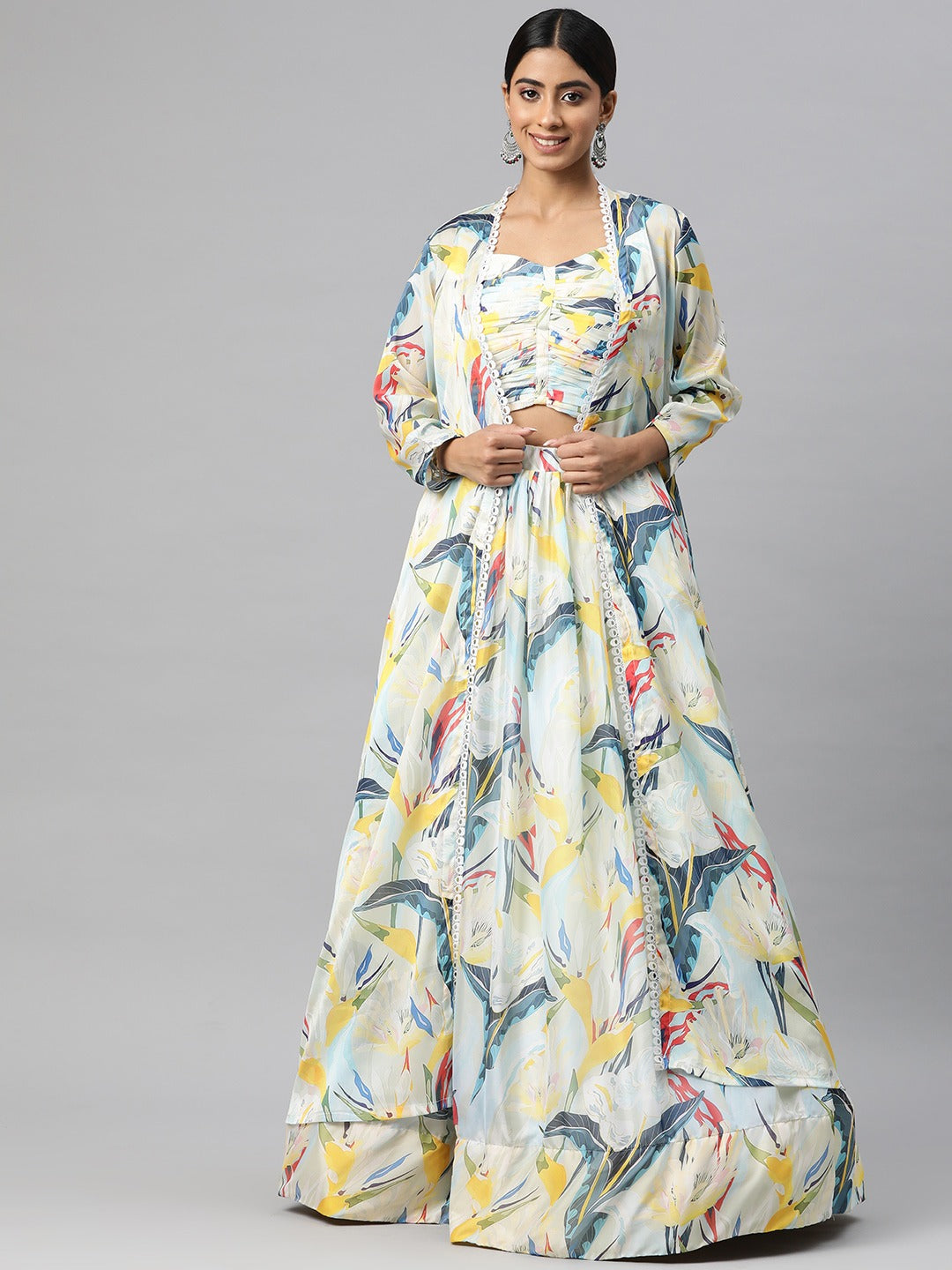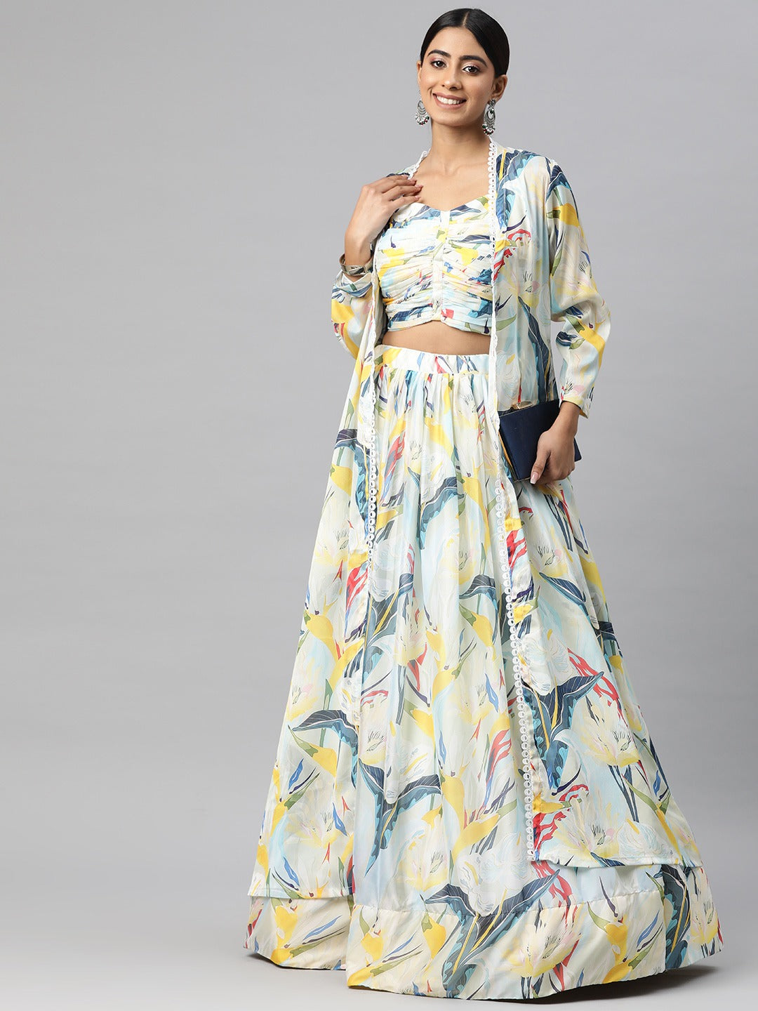 Georgette Fabric Multi Color Lehenga, Choli With Jacket