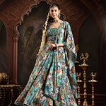 Green Floral Printed & Embroidered Silk Blend Lehenga Choli With Dupatta (Pre-Order)