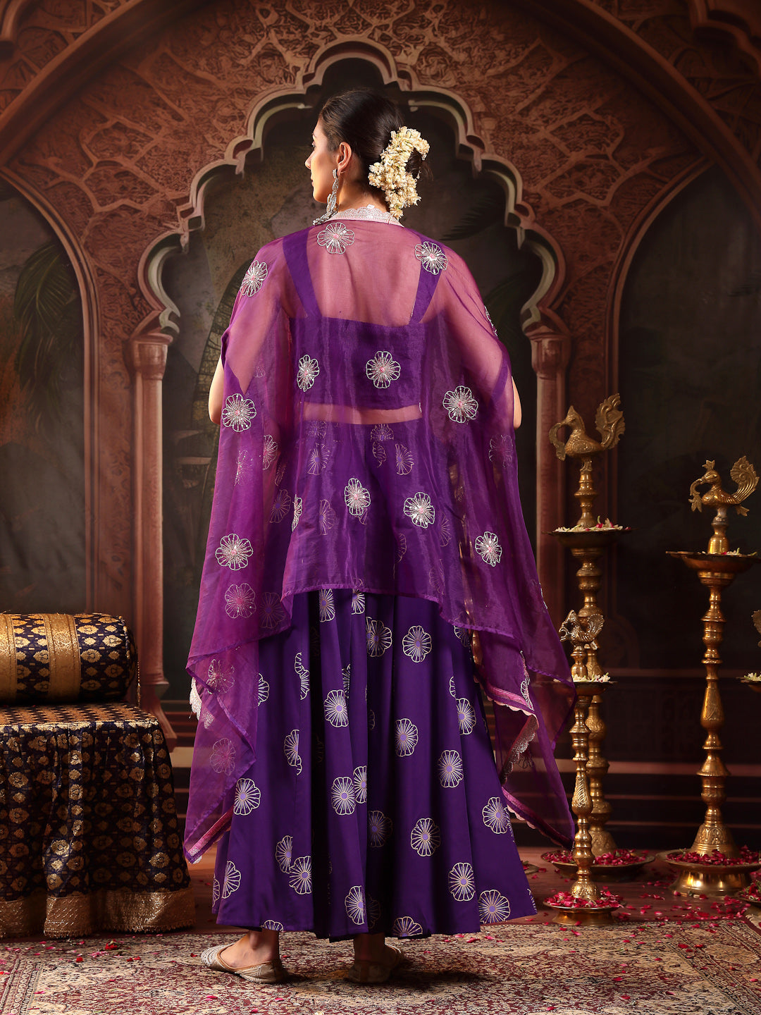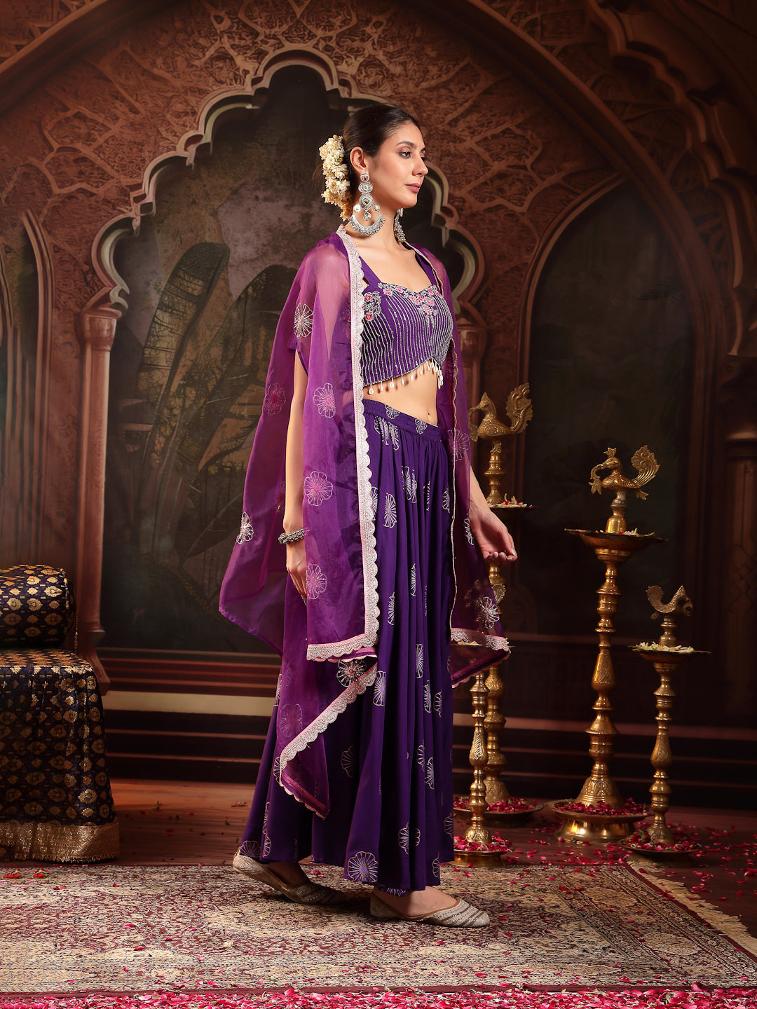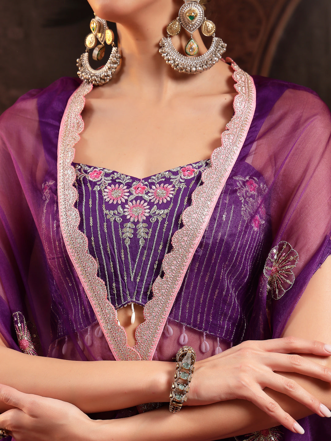 Violet Embroidered Rayon Lehenga Choli With Shrug (Pre-Order)