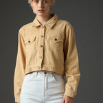 Light Beige Corduroy Boxy Crop Jacket, in Corduroy fabric, Unlined, Regular Length, Comfort Fit, Button Closure, Straight Hemline and features 2 Pockets At Front