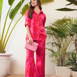 Women Magenta Floral Shirt With Lounge Pants