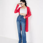 Women Magenta Rib Front Open Shrug