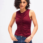 Maroon Box Back Front Ruched Top, in PV Jersey fabric, Casual, Regular Length, NA, Unlined, Ruching At Front Hemline and features NA