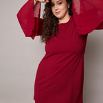 Women Maroon Pleated Sleeves Straight Fit Dress