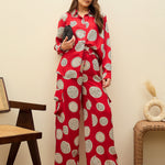 Women Maroon Printed Oversize Shirt With Box Pocket Pants