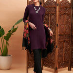 Maroon Solid Hair Wool Straight Kurta, in Nylon fabric, Unlined, Knee Length, Straight Fit, No Closure, Straight Hemline and features Zari Embroidery Detail At Front