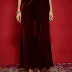 Maroon Velvet Flared Palazzos, in Velvet fabric, Unlined , Ankle Length , Comfort Fit, Slip On, Flared Hemline and features Elasticated Detail At Waist