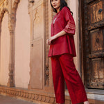 Women Maroon Zari Embroidered Sleeve Top With Palazzos