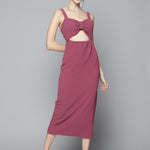 Mauve Waist Cut Out Bodycon Dress, in Karera fabric, Unlined, Midi Length, Slim Fit , No Closure, Straight Hemline and features Cut Out Detail At Front