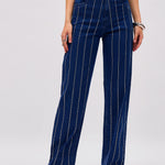 Women Navy Blue Denim Front Stud Straight Fit Jeans