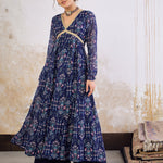 Women Navy Blue Floral V Neck Anarkali Kurta