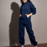 Women Navy Fleece Front Zipper Sweatshirt With Joggers