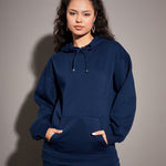 Navy Fleece Oversized Hoodie, in Fleece fabric, Unlined, Regular length, Oversize Fit, No Closure, Straight Hemline and features Kangaroo Pocket Detail At Front