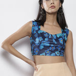 Women Navy Floral Scuba Sweetheart Neck Crop Top