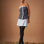 Women Navy Jacquard Geo Tweed Corset Top