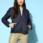 Navy Quilted Hooded Puffer Jacket, in Polyester fabric, Polyester Lining, Regular Length, Comfort Fit, Zipper Closure, Straight Hemline and features Quilting On Jacket