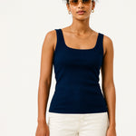 Navy Rib Sleeveless Top, in Rib fabric, Unlined, Regular Length, Slim Fit, No Closure, Straight Hemline and features Square Neck Detail