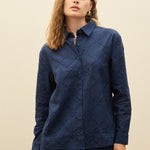 Women Navy Schiffli Full Sleeve Regular Shirt