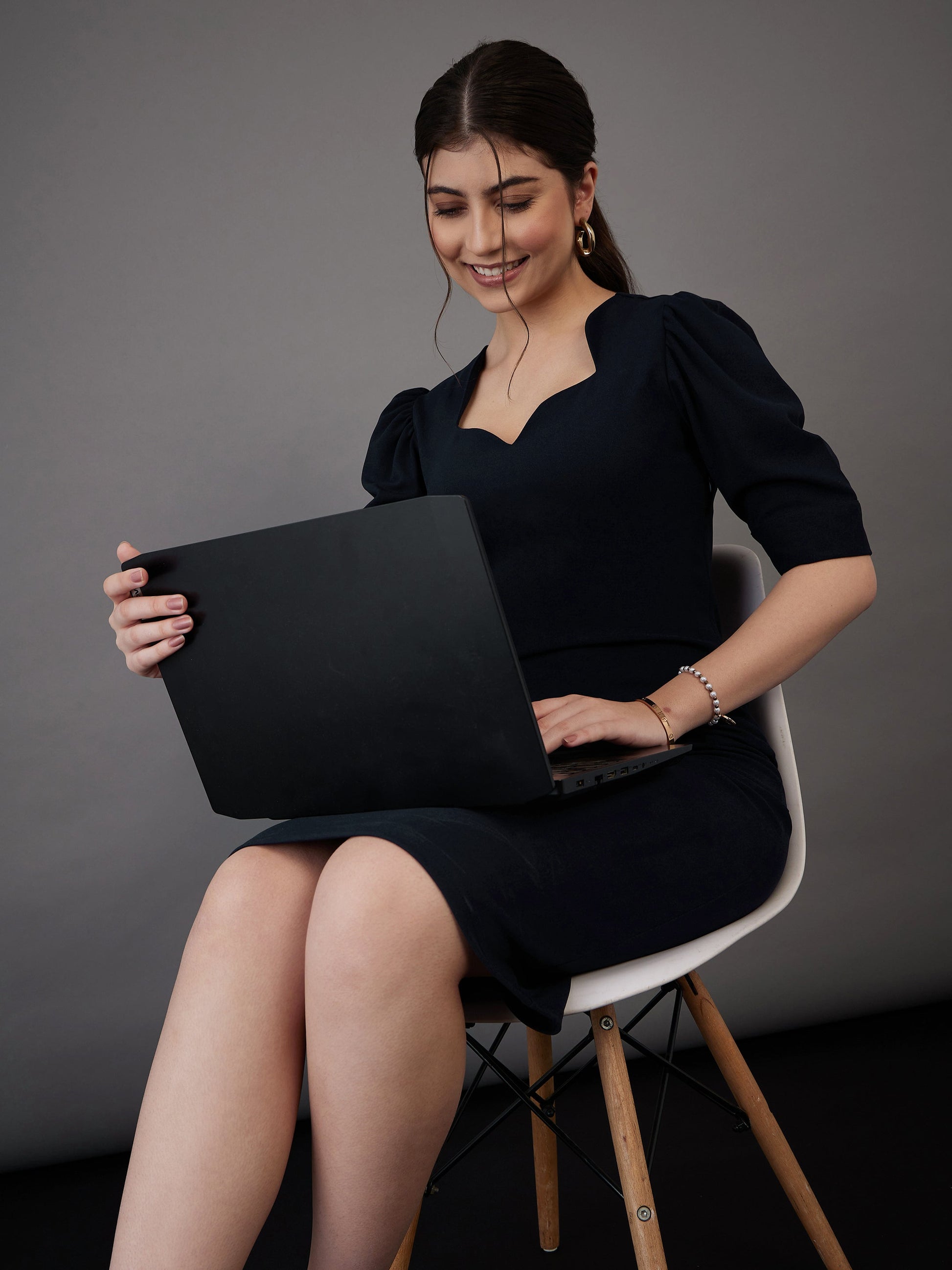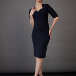 Women Navy Sweetheart Neck Bodycon Midi Dress