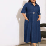Navy Tencel Front Button Midi Dress, in Tencel fabric, Unlined, Midi Length, Comfort Fit, Button Closure, Flared Hemline and features Pockets At Front