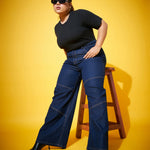 Women Navy Wash Contrast Stitch Straight Jeans