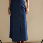 Women Navy Washed Side Pocket Midi Wrap Skirt