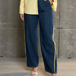 Nevy Blue Fringed Straight Fit Jeans , in Denim fabric, Unlined, Full Length, Straight Fit, Zipper Closure, Straight Hemline and features Drawstring Detail At Side