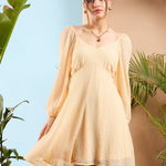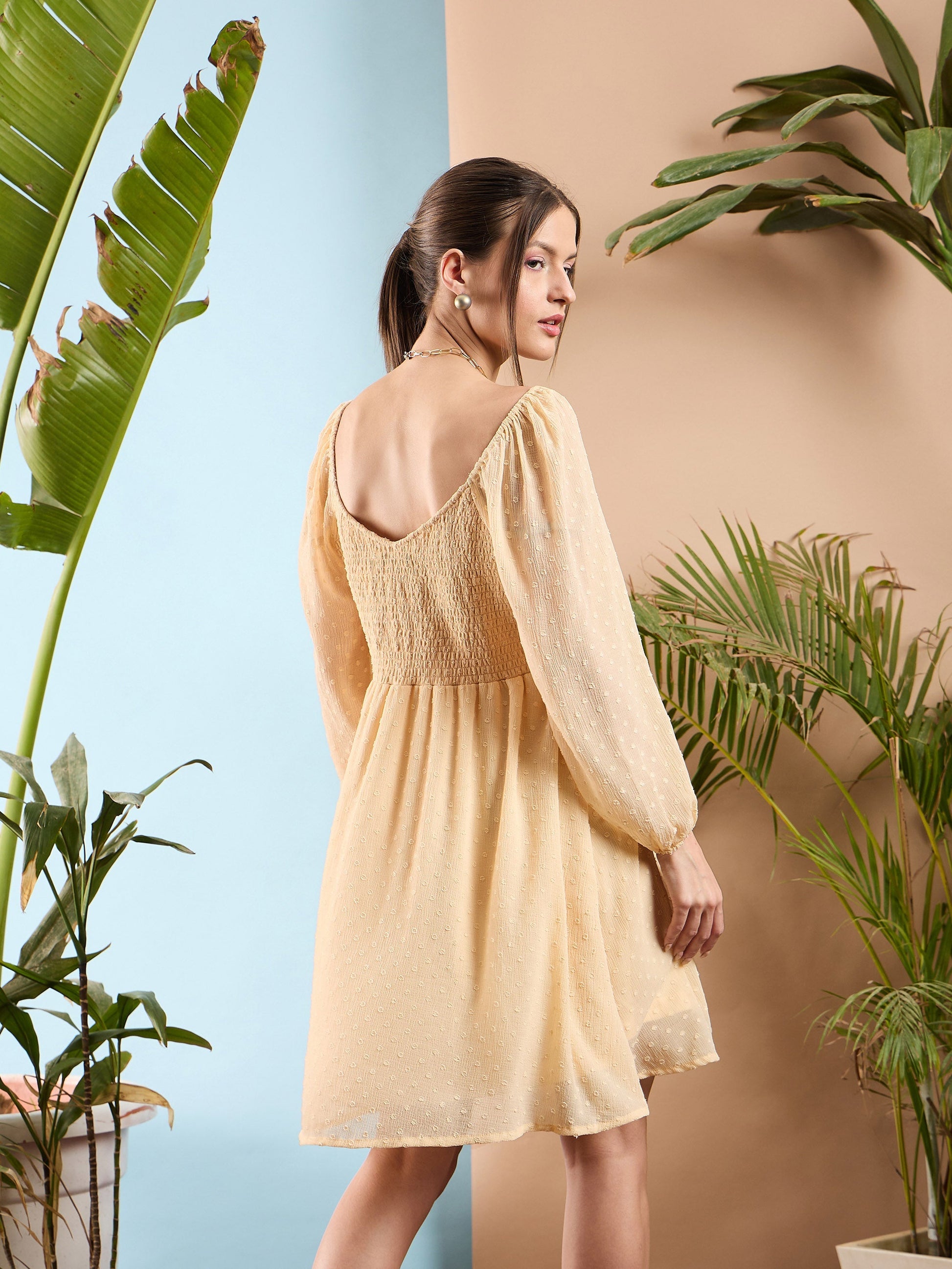 Nude Dobby Sweetheart Neck Ruched Skater Dress, in Swiss Dobby fabric, Smoking Detail At Back Waist, , Woven, Flared, Fabric: Swiss Dobby Hemline and features Smoking Detail At Back Waist