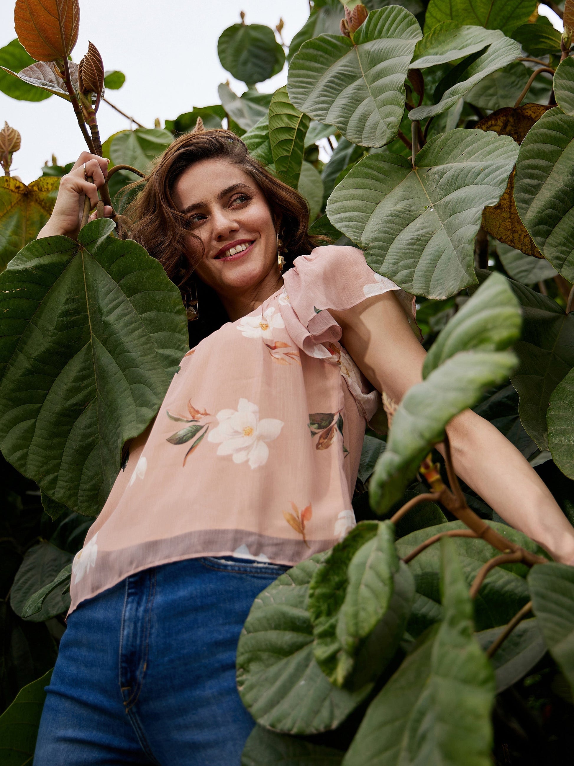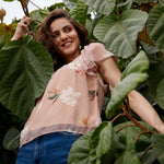 Women Nude Floral Sweetheart Neck Top