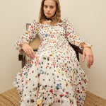 Off-White Ditsy Floral Square Neck Maxi Dress, in Summercool fabric, Polyknit Lining, Below Knee, Fit & Flare, Slip On , Flared Hemline and features Smocing At Back