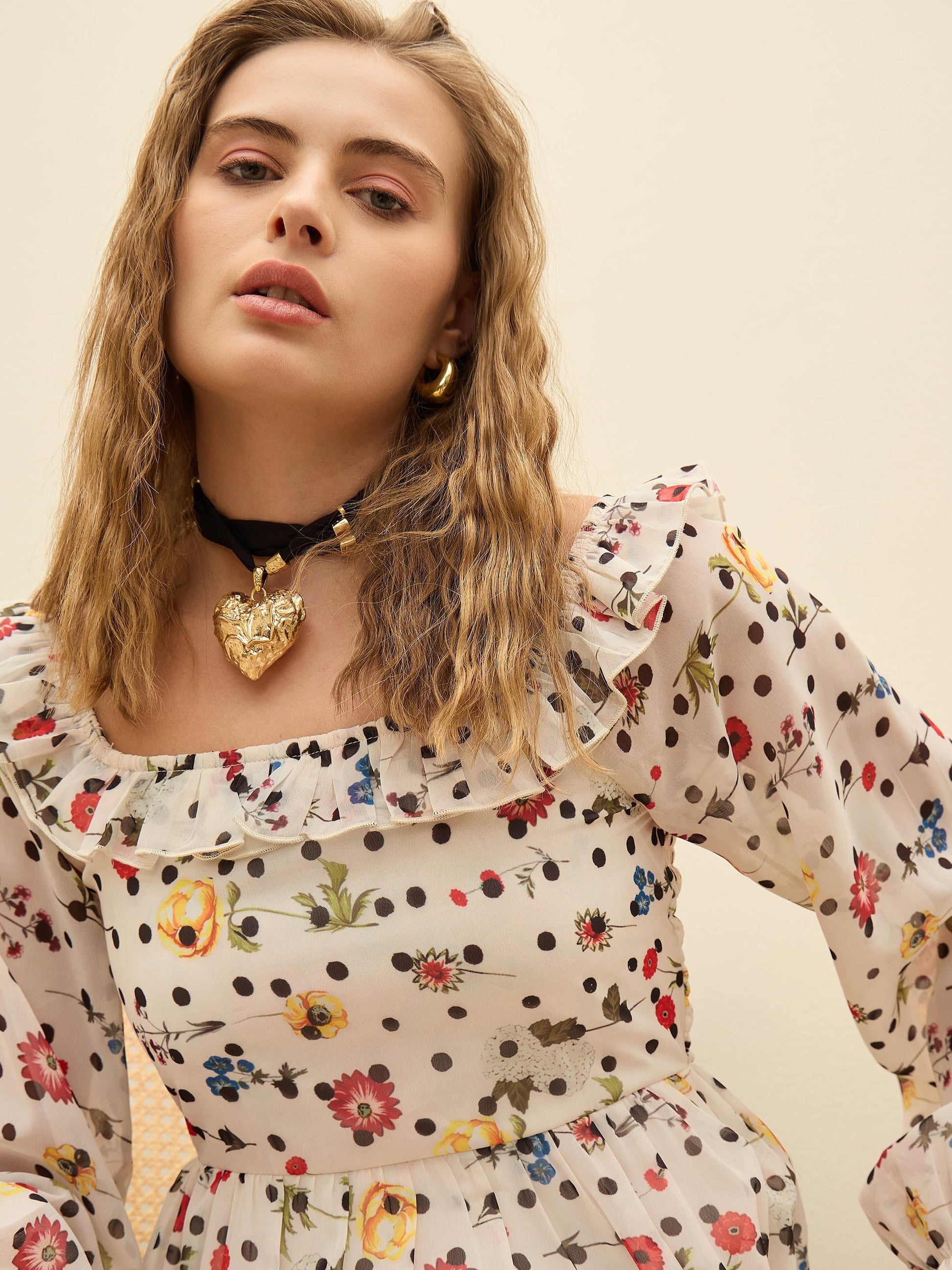 Women Off-White Ditsy Floral Square Neck Maxi Dress