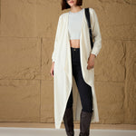 Off-White Front Open Long Shrug, in Flat Back Winter Rib fabric, Unlined, Below Knee, Comfort Fit, No Closure, Straight Hemline and features Self Design
