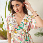 Women Off-White Paisley Floral Kimono Mini Dress