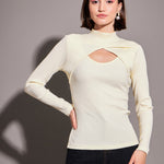 Off-White Rib Moon Cut Top, in Rib fabric, Unlined, Regular Length, Slim Fit, No Closure, Straight Hemline and features Cut Out Detail At Neck