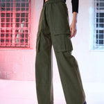 Olive Box Pocket Cargo Jeans , in Denim fabric, Unlined , Full Length , Straight Fit, Button Closure, Straight Hemline and features Patch Pockets At Back