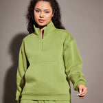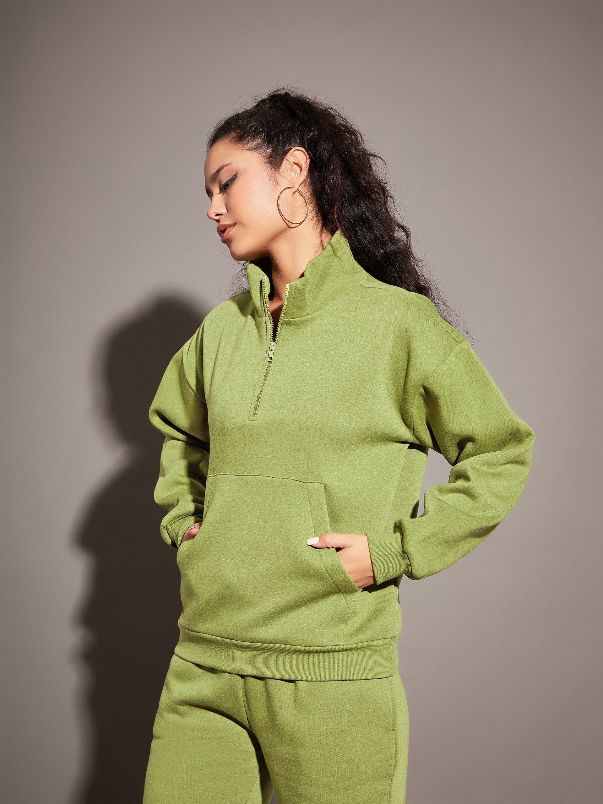 Olive Fleece Front Zipper Sweatshirt, in Fleece fabric, Unlined, Regular length, Comfort Fit, Zipper Closure, Straight Hemline and features Zipper Detail At Front