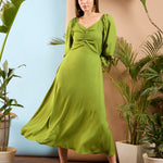 Women Olive Front Ruched Back Cut Out Midi Dress