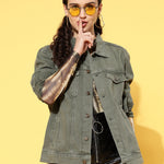 Olive Solid Denim Jacket, in Denim fabric, Unlined, Regular Length, Comfort Fit, Button Closure, Straight Hemline and features Flap Pocket Detail At Front
